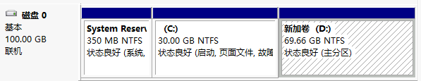 刚装好的 Windows 系统只有 C 盘,需要手动创建 D 盘。