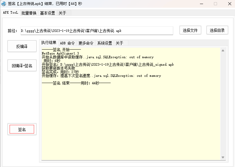 替换后使用签名工具 ApkTool 选择修改好的 APK 文件进行签名即可。
