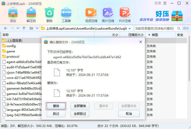 修改文件我放到了客户端/安卓修改目录下,用 UE中文版编辑器打开,将 82.157.189.73:998// 替换成你的 IP 对位修改,方法同上。找到上古传说.apk 文件,用好压压缩软件打开,将修改好的文件分别拖回对应的目录下替换。