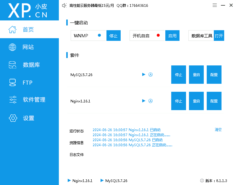 游戏启动很简单,先双击 phpstudy_pro 启动小皮,启动 MySQL 和 Nginx 服务。