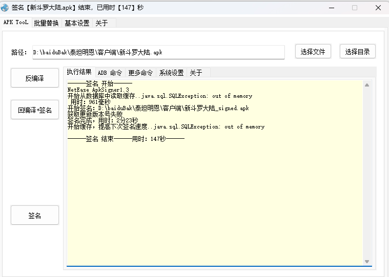 替换后使用签名工具 ApkTool 选择修改好的 APK 文件进行签名。